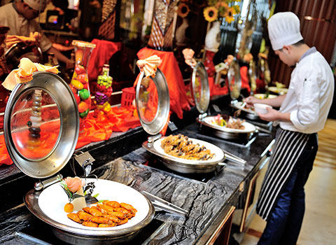 酒店擁有風格迥異的各式餐廳:“世紀廳”大型宴會廳豪華典雅,是舉辦各類活動及婚宴、壽宴、滿月宴的首選; 32間中餐包廂富麗堂皇,是您宴請貴賓的理想去處,您可以品嘗到原汁原味的各式海鮮;大堂吧供應(yīng)價廉物美的各式飲品、茶點,是賓客休閑會友的好去處。